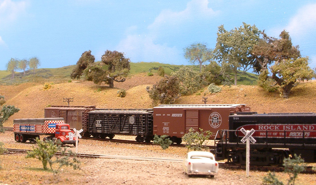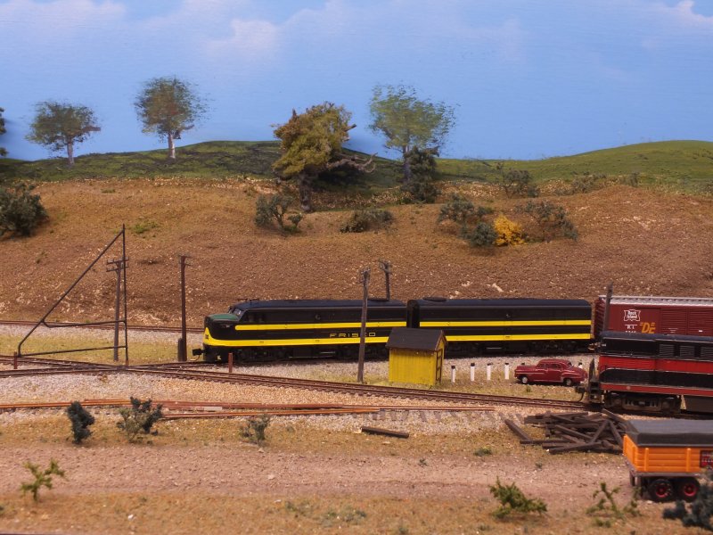 On the mainline level the layout features the large town of Beckton which has a classification yard, engine servicing facilities for both steam and diesel, and several industries that are served. Eastridge Staging is located below Beckton and is accessed by a 4 turn helix. The next town on the layout is Green Valley and contains several grain elevators and other industries to support the local farmers and an interchange with the Frisco with a hand operated smash board where the two railroads cross along with a scale house that is used to weigh all grain cars. Port Allen is my tribute to John Allen, it has no resemblance to any location that was on his layout, but I do have a car float operation and other switching opportunities. The last mainline town on the layout is Clifton which serves mines and mills and spur to the Dam Site. The layout then continues into the closet where Davis Junction is located; this is where the Branchline connects with the mainline. Just past Davis Junciton is the western terminus of the railroad where Westley Staging is located.