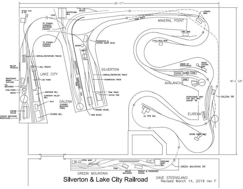 The modeled portion of the railroad is from Silverton to Lake City with Durango and Gunnison represented by hidden staging yards.
